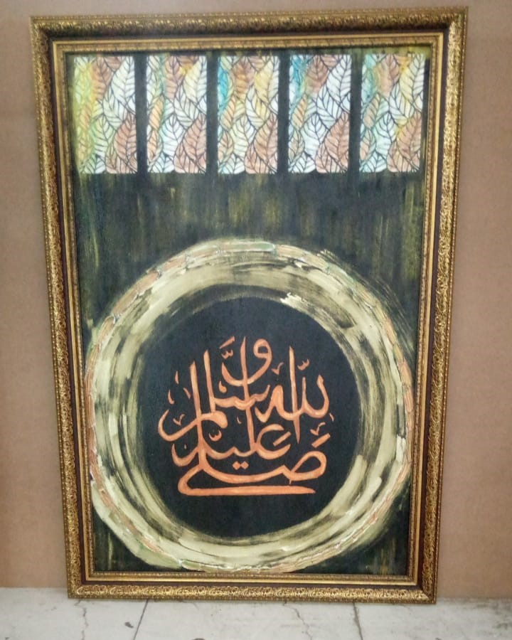 Featuring elegant, hand-crafted Arabic calligraphy of the Durood, this artwork is enhanced with rich textures that add depth and dimension to each stroke.