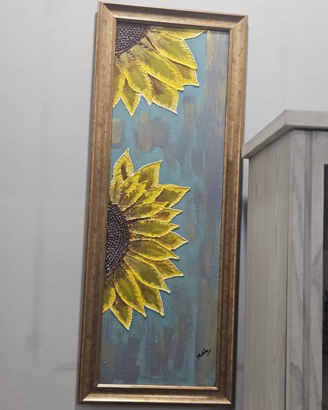 Brighten any space with this Sunflower Texture Art Painting, showcasing vibrant sunflowers brought to life with rich, layered textures. The tactile surface adds depth and dimension, capturing the natural beauty and warmth of sunflowers in full bloom. Perfect for nature lovers and art enthusiasts, this dynamic duo makes a cheerful and sophisticated statement in any room, whether displayed together or separately.